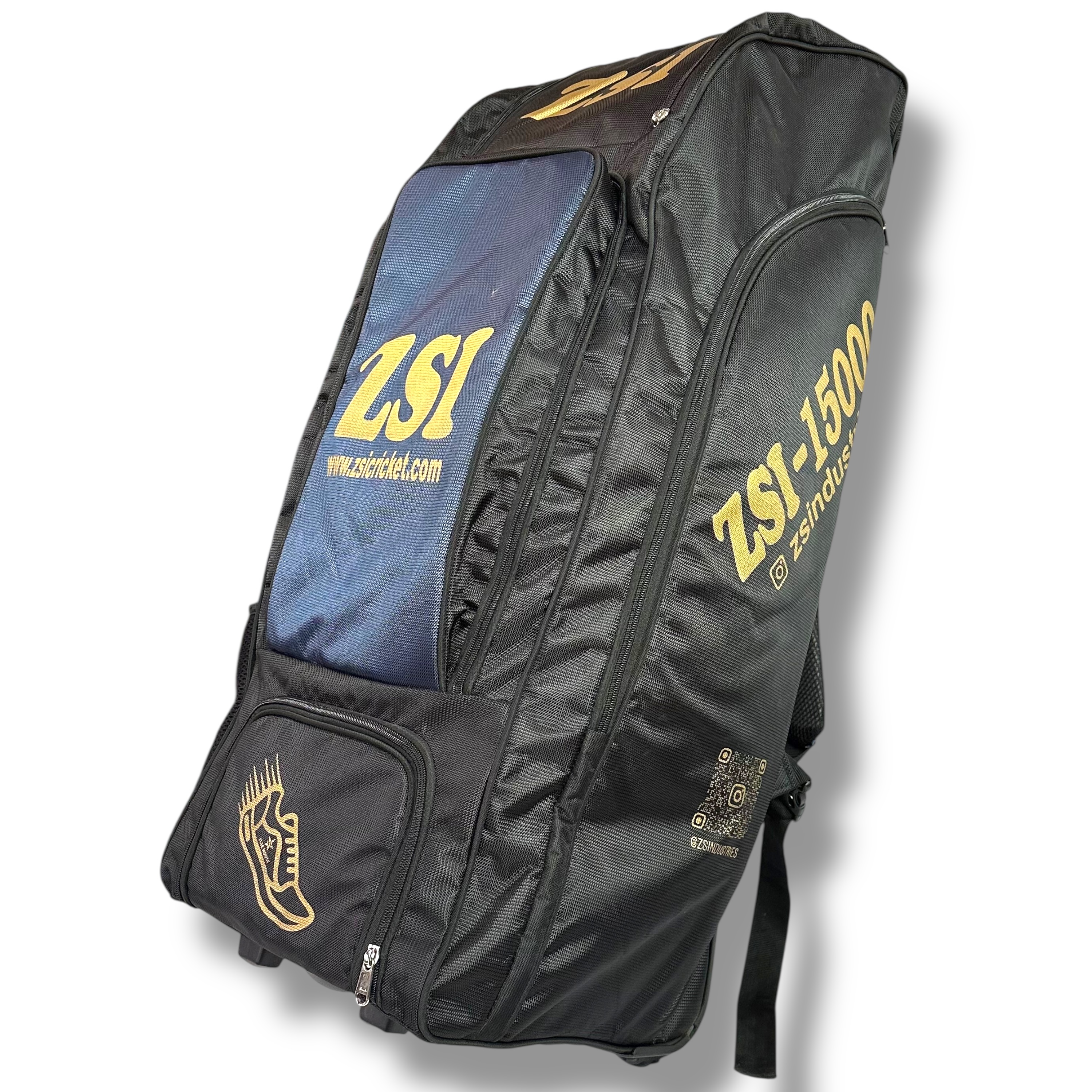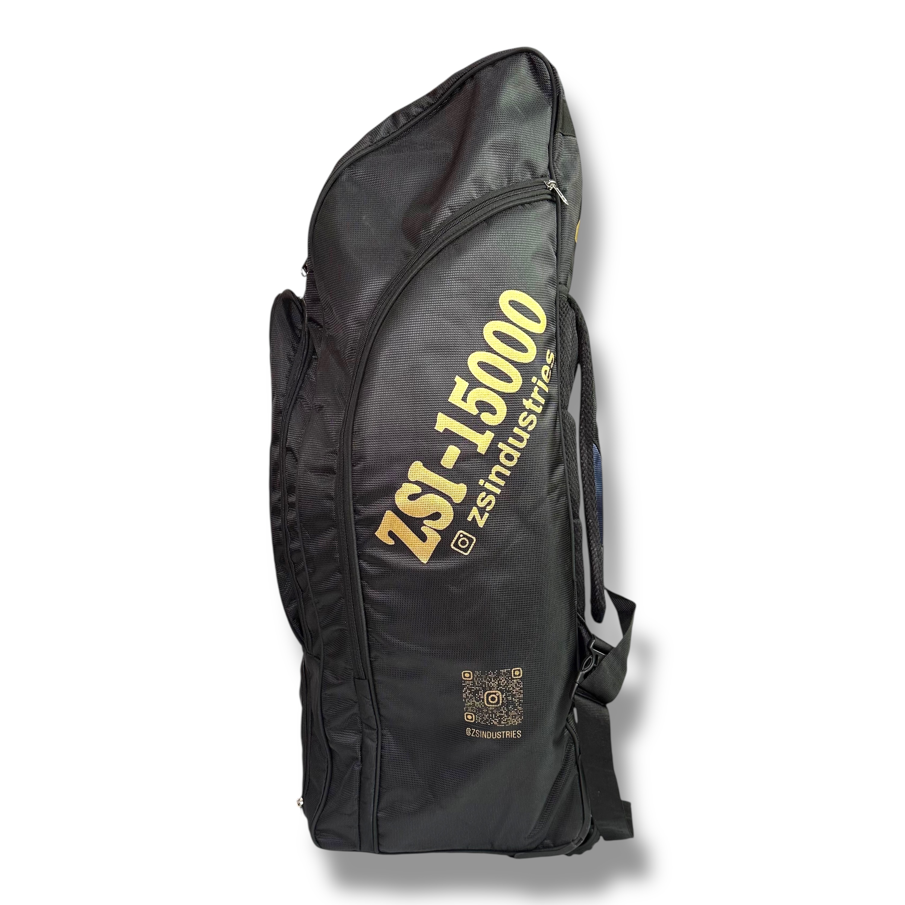 The ZSI 15000 Black Kit Bag is the pinnacle of cricket luggage, designed for the professional and serious club cricketer who requires enormous capacity, supreme durability, and sleek aesthetics. In its striking all-black finish, this bag makes a statement of unwavering professionalism and quality.